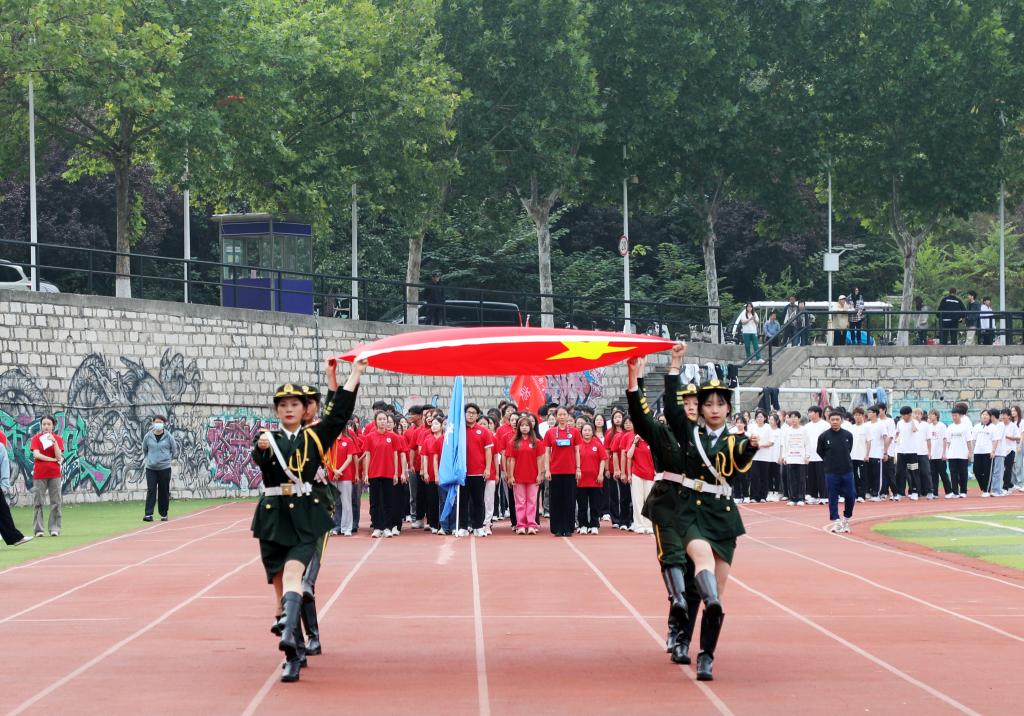 27日上午的开幕式上,裁判员方队、志愿者方队和各学院代表队迈着整齐的步伐从主席台前依次走过,结合学院专业特色,喊出嘹亮的口号,展现出昂扬向上的精神面貌。在随后进行的开幕式表演中,同学们进行了精彩的舞蹈、旗袍秀和啦啦操表演,不仅展现出青春活力的阳光姿态,也提振了参赛选手和全体师生的士气。