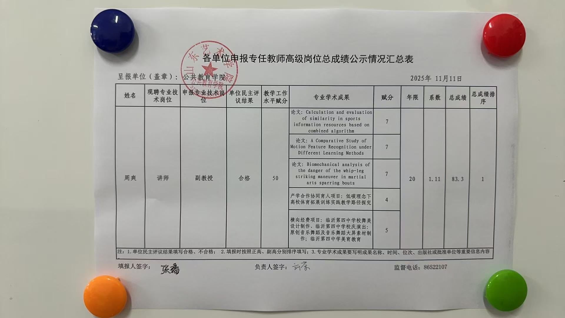 公共教育学院申报专任教师高级岗位总成绩公示情况